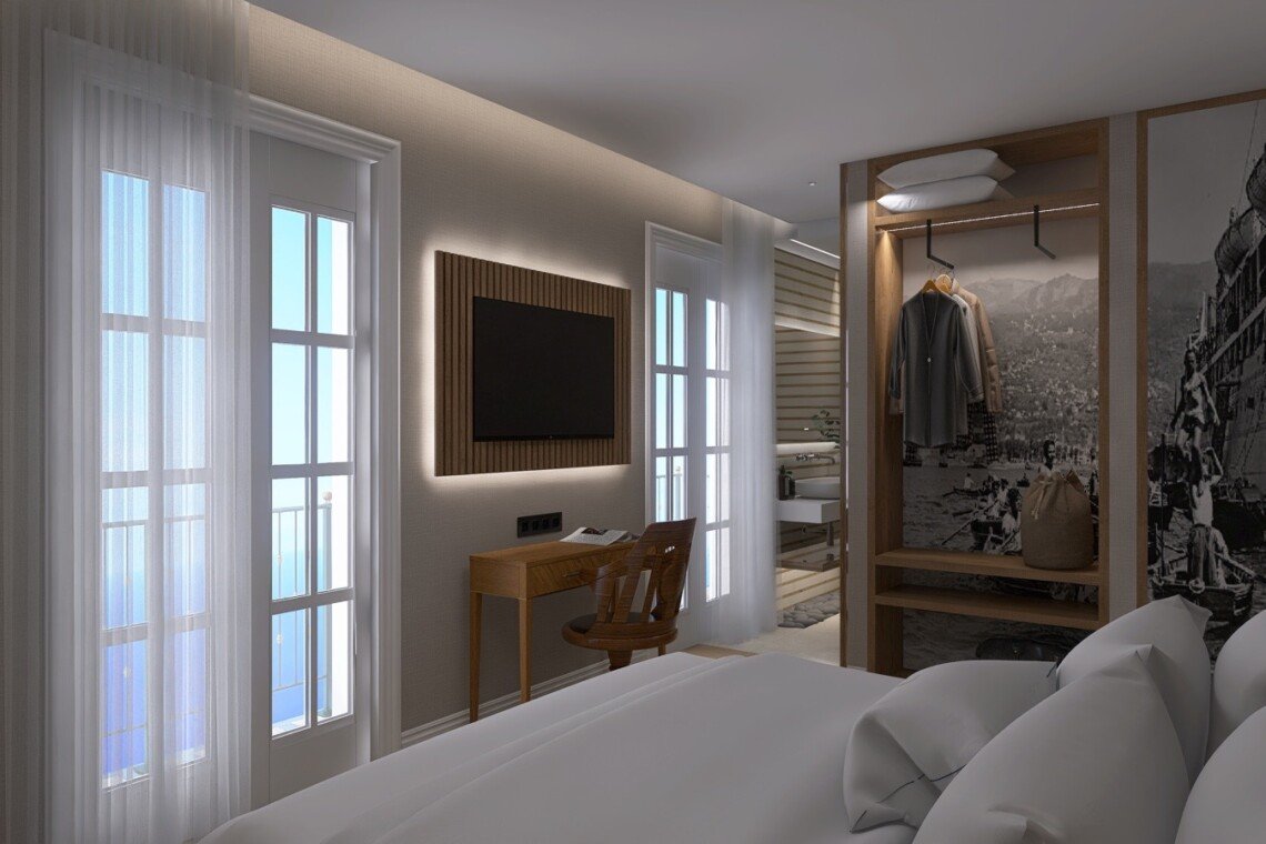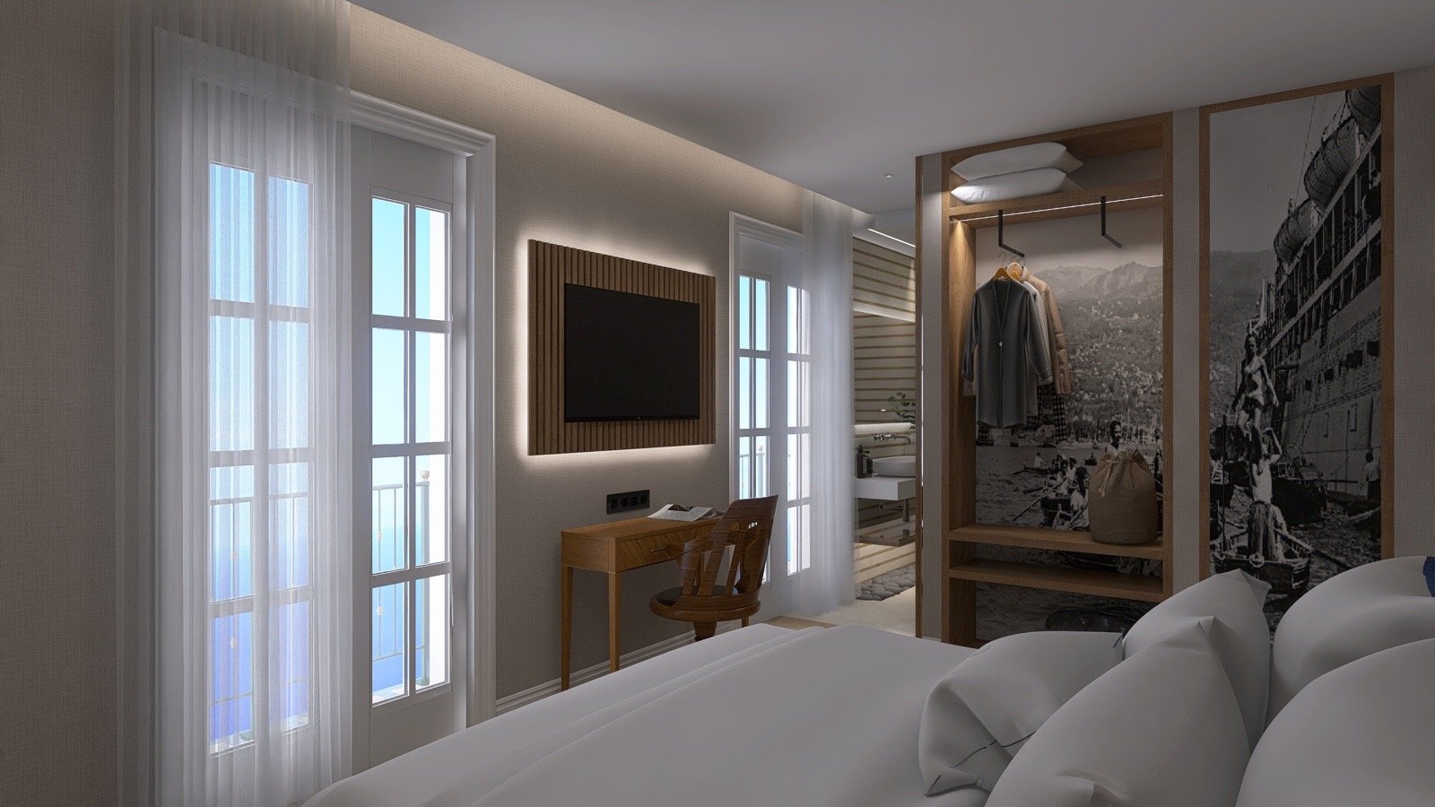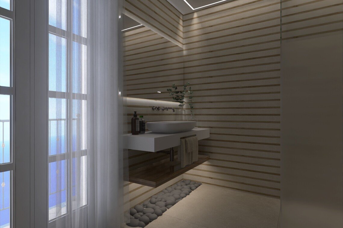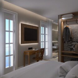 This Suite features a king-size bed and a private bathroom with a walk-in shower, facing south with magnificent sea views. With luxury amenities, 5-star hotel grade mattresses, 400-thread count cotton bed sheets, and pillows of varying firmness, this suite is designed to provide a luxurious retreat. Additional amenities include a SMART TV, Bluetooth speakers, high-speed Wi-Fi, fog-free mirrors, and luxury bathroom amenities including a hair dryer, beauty soaps, shower gel, and shampoo. Experience comfort and elegance, ensuring a restful and serene stay while heading 208º South West.
