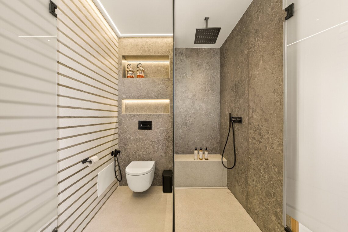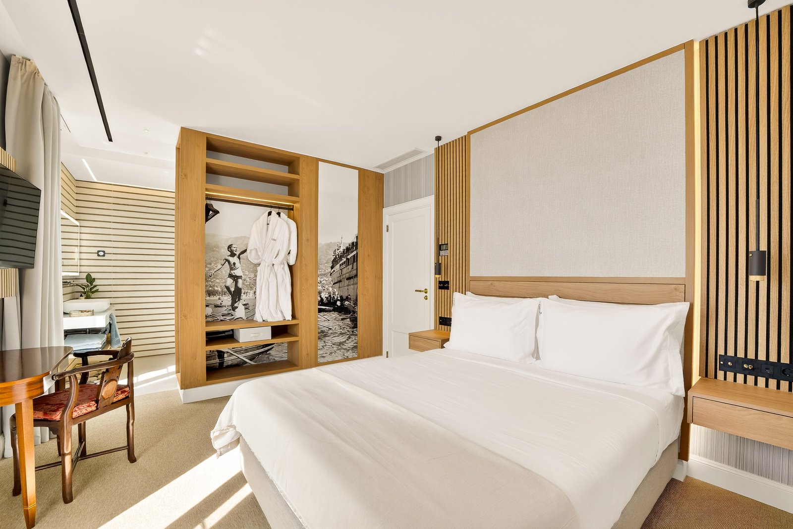 King Size Bed & Private Bathroom This Suite features a king-size bed and a private bathroom with a walk-in shower, facing south with magnificent sea views. With luxury amenities, 5-star hotel grade mattresses, 400-thread count cotton bed sheets, and pillows of varying firmness, this suite is designed to provide a luxurious retreat. Additional amenities include a SMART TV, high-speed Wi-Fi, fog-free mirrors, and luxury bathroom amenities including a hair dryer, beauty soaps, shower gel, shampoo, conditioner and body cream. Experience comfort and elegance, ensuring a restful and serene stay while heading 208º South West.